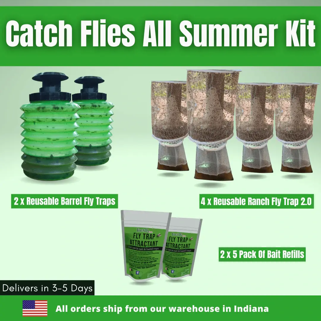Catch Flies All Summer Kit - (4x Ranch Fly Trap 2.0, 2 Barrel Traps + 2 Bait Booster Packs) (Save 41% on the RRP)